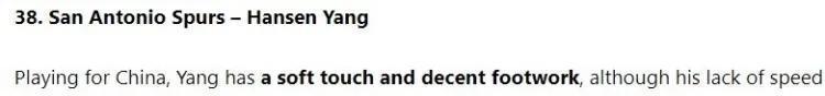 外传NBC体育展望,杨瀚森这小伙儿将在第35顺位被76东说念主给招走,此次然而次轮里的明星啊,排行顶呱呱的!