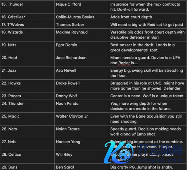 字据知名的选手挑选平台HoopsHype的展望,篮网将在第36个号码把杨瀚森揽入怀中!