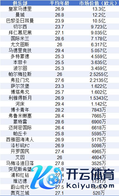 第三家全队身价超10亿的俱乐部是大巴黎,天然阵中莫得破亿身价的球员,但诸如登贝莱、克瓦拉茨赫利亚、杜埃等球员均在球员身价榜前20。此外他们亦然身价榜前三名中球员平均年岁最低的球队,独一23.9岁,而皇马和曼城均跨越26。