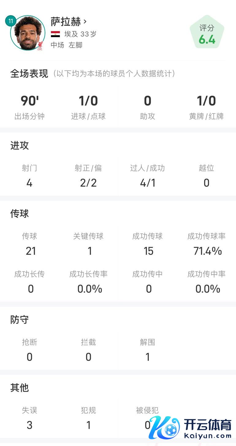 萨拉赫本场数据: