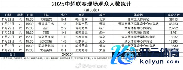2025中超联赛现场不雅世东谈主数统计(第30轮) 欧洲杯体育信息