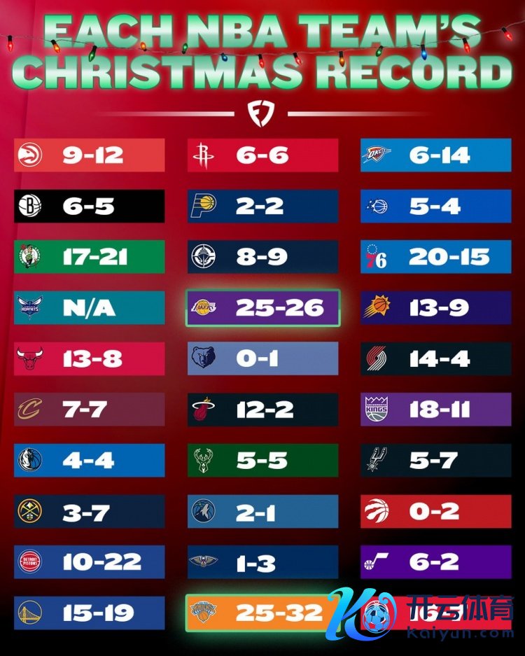 你的位置:买球站-欧洲杯足球压球网-五大联赛买球赛-欧预赛买球网-中欧买球网-亚洲体育FIFA滚球_欧洲杯体育新闻 > 欧洲杯体育信息 > NBA各队圣诞战绩!湖东谈主25胜26负 尼克斯25胜32负 黄蜂最惨没打过欧洲杯体育信息