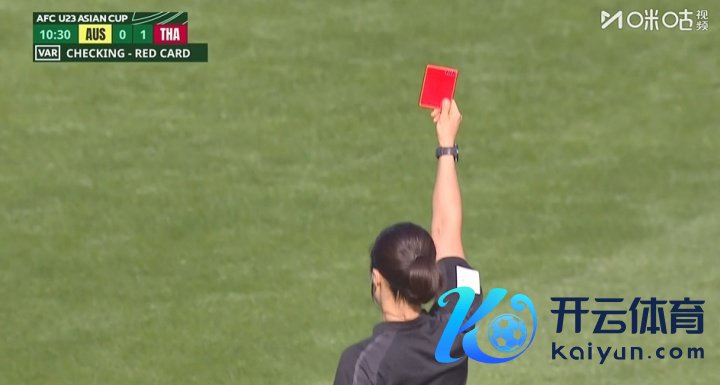 泰国第8分钟破门1-0卓越澳大利亚,1分钟后泰国球员詹森飞踹敌手小腿,韩国女主裁回看VAR后改判红牌,泰国队第10分钟少打1东说念主。