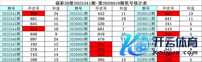 上期回想:福彩3D第2026019期奖号为:223,其中奖号组选类型为:组三,奇偶比为1:2,大小比为0:3,012路比为1:0:2,和值为7,跨度为1。