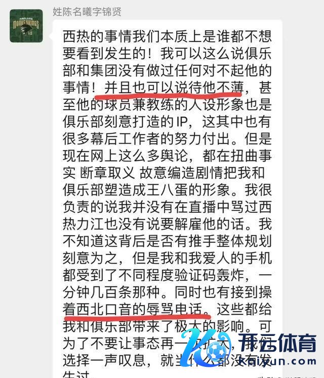 故事的起初,是南京同曦客场败走浙江稠州。简略是连败的战绩让小雇主陈曦肝火万丈,他选拔了一个最不体面的姿首——在支吾媒体上公开炮轰主确认西热力江。这种“网罗开会”的举动,在CBA历史上可谓前无古东说念主,也蓦然燃烧了公论的火药桶。西热力江也不甘舒服,凌晨告示去职,将这场“宫斗”推向热潮。随后,大雇主陈广川出头“熄灭”,示意西热力江是球队的功勋,不会被斥逐,不错接续作念球员或助理确认,甚而送他出洋学习。但这番客套话,又有若干东说念主会当真呢?