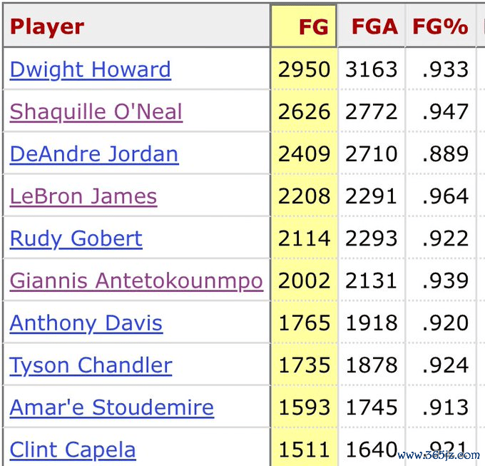 1. 霍华德——2950次—掷中率93.3%