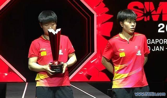当她俩举起奖杯,任由记者拍照时,依然莫得些许表情。蒯曼举奖杯时,显得很劳作。她在举混双奖杯时,也显得很劳作。这座奖杯很大、很千里,年青的蒯曼可能举起来很劳作。