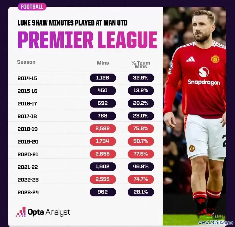卢克肖在2014年夏天离开南安普顿,加盟曼联,转会费3750万欧元。据Opta的统计,在卢克肖为曼联服从的10个好意思满英超赛季中,他惟有4个赛季英超出场率卓越50%,卢克肖频频因伤无法出战。健康的卢克肖很强,能攻善守,问题是卢克肖不怎么上场比赛。英格兰队的左路卢克肖,右路詹姆斯,两情面况相通,詹姆斯24岁还年青,但卢克肖依然29岁了。