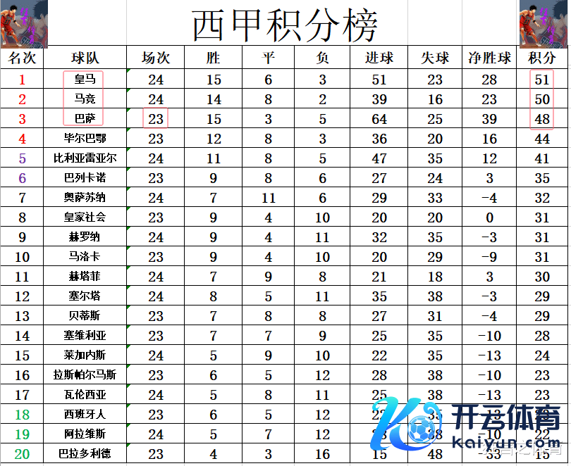 积分榜方面,皇马被黑只拿到1分,马竞今天也没好到哪去,他们开场就染红,10打11近乎整场,终末也被弱旅逼平,这么的话皇马就照旧暂时1分上风力压马竞领跑。马德里双雄吃瘪,喜跃的当然便是巴萨了,巴萨后天唯有在主场全取3分,就将力压马竞,皇马夺回榜首。