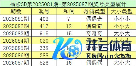 福彩3D第2025087期回首:奖号为826,奖号奇偶比为0:3欧洲杯体育信息,大小比为2:1,和值为16,类型为组六。