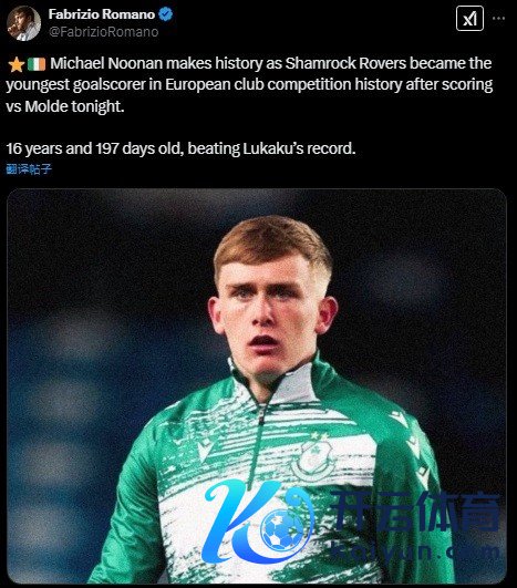 2月14日讯 在今天凌晨进行的欧协联比赛,16岁197天的爱尔兰小将迈克尔-努南进球,成为欧战历史上最年青的进球球员。 在欧协联淘汰赛附加赛首回合欧洲杯体育信息,沙姆洛克流浪者客场1-0治服莫尔德,比赛第57分钟,迈克尔-努南打进制胜球。进球时迈克尔-努南年仅16岁197天,他成为了欧战历史上最年青的进球球员,此前的记载由卢卡库保合手(16岁218天)。......