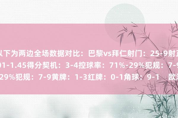 11月5日讯 在本轮欧冠,拜仁2-1打败巴黎,以下为两边全场数据对比: 巴黎vs拜仁 射门:25-9 射正:9-5 预期进球:2.01-1.45 得分契机:3-4 控球率:71%-29% 犯规:7-9 黄牌:1-3 红牌:0-1 角球:9-1欧洲杯体育信息......