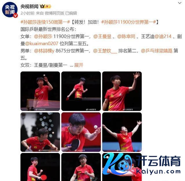 王曼昱、陈幸同、王艺迪和蒯曼分列第二到第五,我们国乒妹子把天下前五名皆揽得手啦!