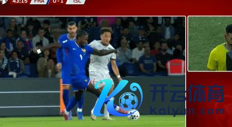第 33 分钟,特奥右路传中,小图拉姆近距离头球攻门被扑出,科内门前补射,居然依然被冰岛门将英勇化解。