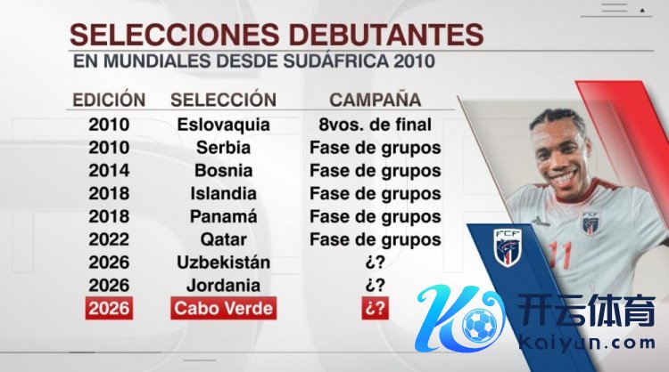2010年以来,照旧有6支球队初次活着界杯上亮相,辨认为斯洛伐克、塞尔维亚、波黑、冰岛、巴拿马和卡塔尔。然而,唯有斯洛伐克在小组赛中奏效晋级体育集锦,其他5支球队均折戟小组赛,佛得角、乌兹别克斯坦以及约旦能否有好的得益值得期待。