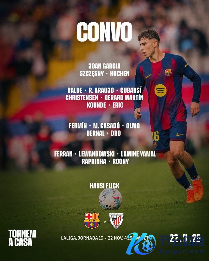 11月22日讯 今晚11点15分,巴萨将在西甲第13轮主场迎战毕尔巴鄂竞技,球队咫尺公布了比赛名单。