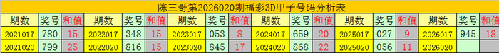陈三哥3D第2026020期甲子号分析: