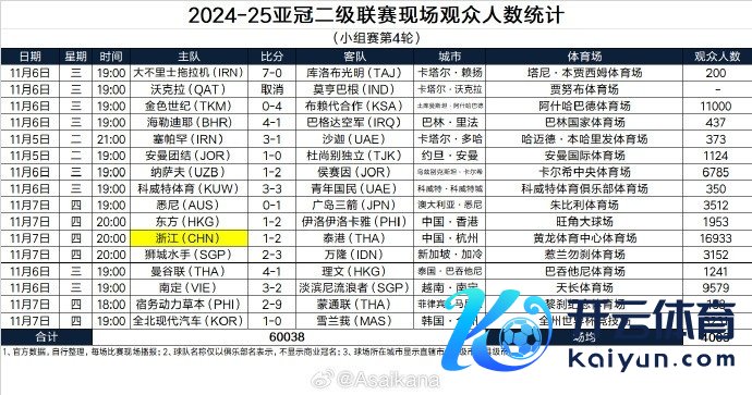 2024-25亚冠二级联赛现场不雅世东谈主数统计(小组赛第4轮) 体育集锦