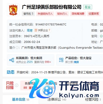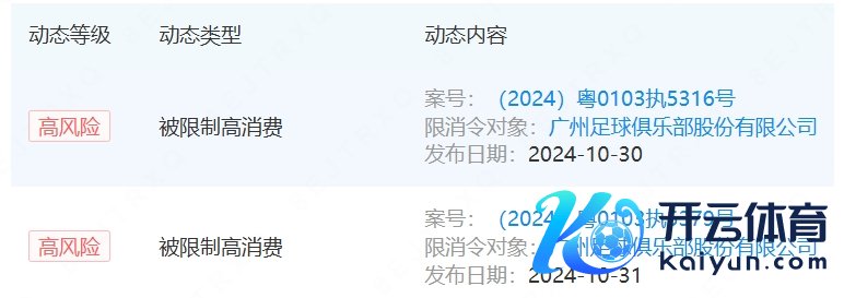 11月09日讯 据著明工商信息查询平台企查查音问,广州足球俱乐部近日新增2条被兑现高消耗令,引申金额约180万元。