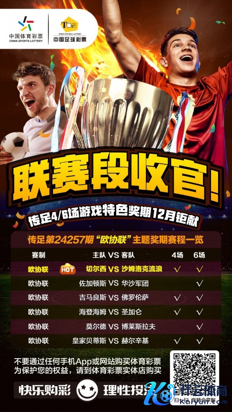 传足4/6场游戏脾气奖期第24257期竞猜场次聚焦欧洲足联协会联赛的联赛阶段第六轮赛事,具体场次为切尔西VS沙姆洛克流浪、佐加顿斯VS华沙军团、吉马良斯VS佛罗伦萨、海登海姆VS圣加伦、莫尔德VS博莱斯拉夫和皇家贝蒂斯VS赫尔辛基。