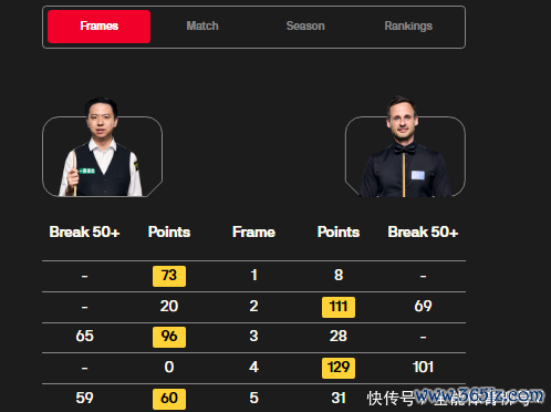 “中国147分先生”周跃龙十分缺憾,他在首个比赛中的战绩是1胜2负,名次垫底。第二个比赛日得回2胜1负的战绩,最终的战绩锁定为3胜3负。