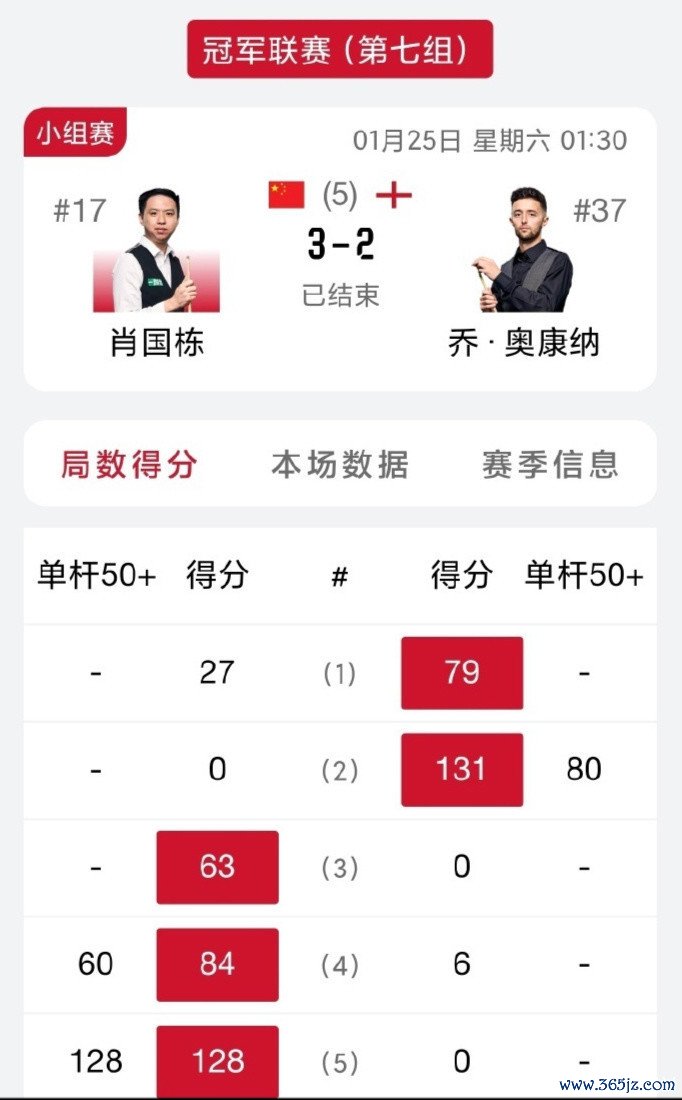 北京时辰1月27日音问,2025年斯诺克邀请赛版冠军联赛小组赛结果。第七组小组决赛中,武汉公开赛冠军肖国栋景况火爆,他以总比分3-2绝杀“147分先生”大卫-吉尔伯特夺得小组冠军,强势晋级优越组。