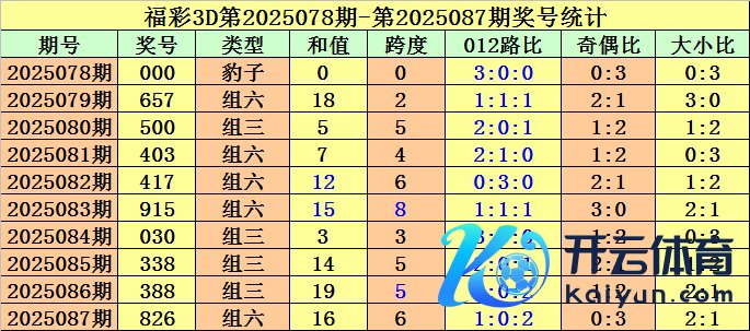 2025-11-11开奖追念:福彩3D第2025087期奖号开出826。奖号类型为:组六,大小比为2:1,奇偶比为0:3体育集锦,和值为16。 百位推选:百位最近20期号码012路比为8:8:4,当今0路号码遗漏1期,1路号码遗漏5期,2路号码遗漏0期,另外0-9号码遗漏期数区分为: 0路号码:6遗漏8期、9遗漏4期、0遗漏3期、3遗漏1期; 1路号码:1遗漏50期、7遗漏11期、4遗漏5期; 2路号码:2遗漏15期、5遗漏7期、8遗漏0期; 本期百位防卫0路号码,精选一码3。 十位推选:十位在前20期开奖中号码