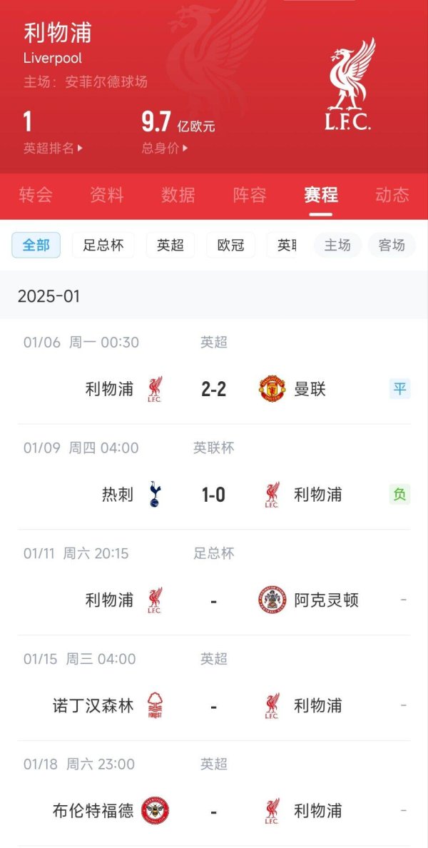 体育集锦 01月09日讯 利物浦新年以来的“小考”一经写过2说念题,然则第一题双红会斯洛特丢掉2分,第二题联赛杯打热刺则是失利。 之后,利物浦还将在客场接连对阵诺丁汉丛林和布伦特福德。丛林是英超积分榜第3,亦然送给赤军英超独逐个败的敌手;布伦特福德则是主场龙,他们在格里芬公园球场的战绩很亮眼(7胜1平2负,英超第3)。 此外,本周末赤军还有一场足总杯对阵英乙保级队阿克灵顿的比赛,鉴于敌手的实力体育集锦,这场比赛赤军可能会轮流,算是一次“附加题”。......