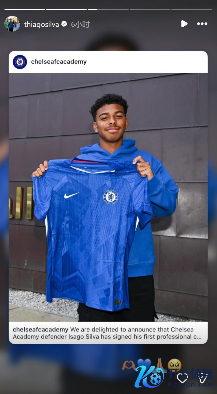 蒂亚戈·席尔瓦17岁的男儿伊萨戈与切尔西签署行状公约,蒂亚戈·席尔瓦社媒转发签约像片,并配上蓝色心形颜料标记。