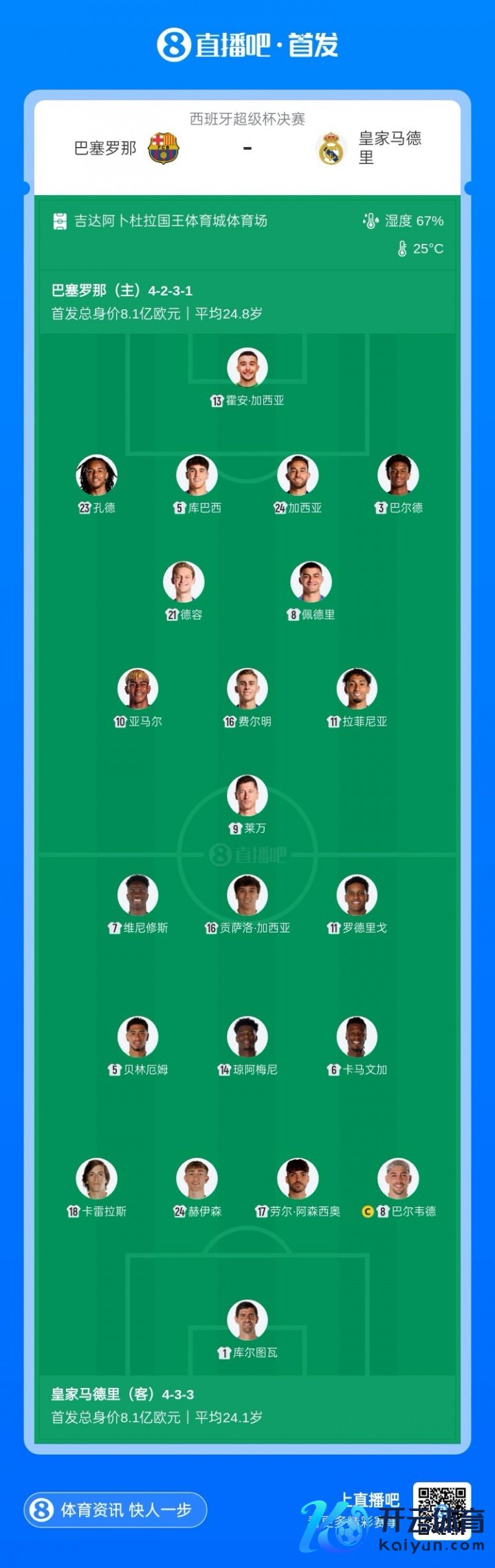火星撞地球!巴萨首发总身价8.1亿欧,皇马首发亦然8.1亿欧体育录像/图片