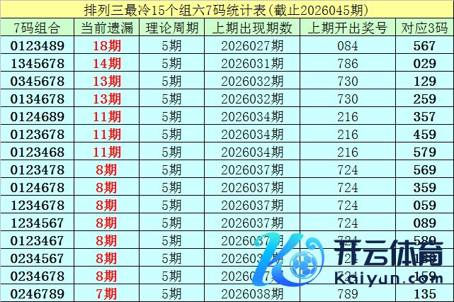 (1)在罗列三已开出的7520期奖号中(统计闭幕第2026045期),现在7码组六遗漏值最大的组合为:0123489,本期遗漏18期;