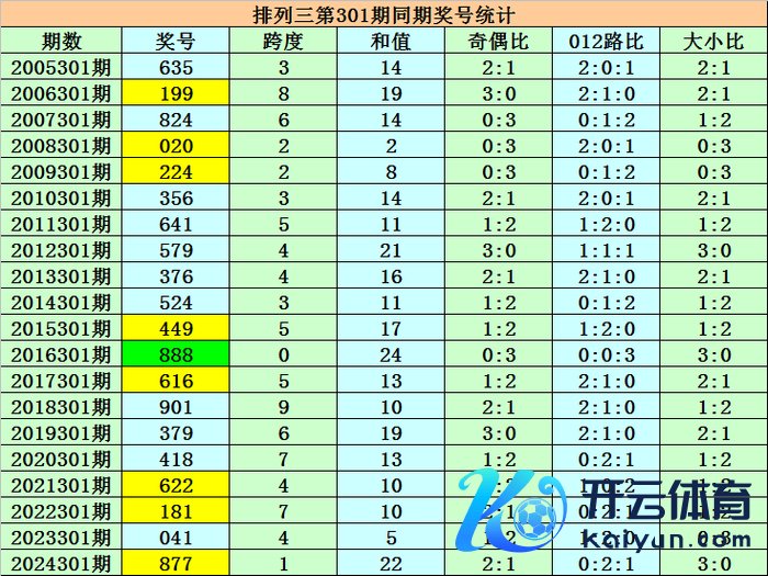 上期回来:陈列三第2024301期奖号为877体育录像/图片,组选类型为组三,奖号大小比为3:0,012路比为0:2:1,奇偶比为2:1。