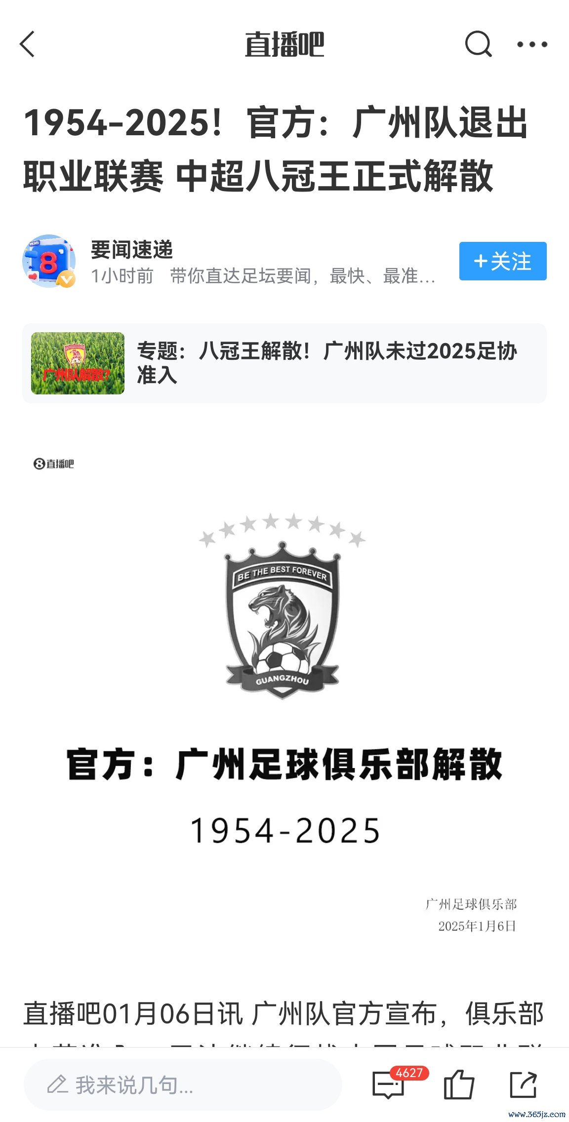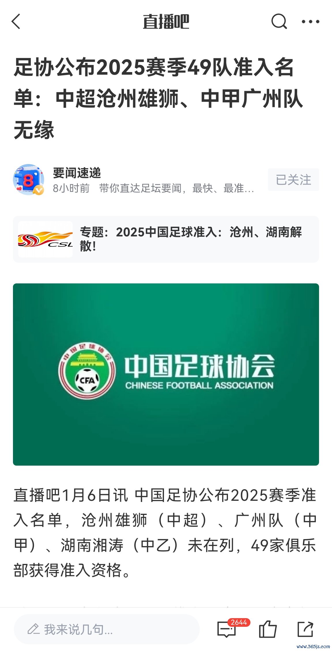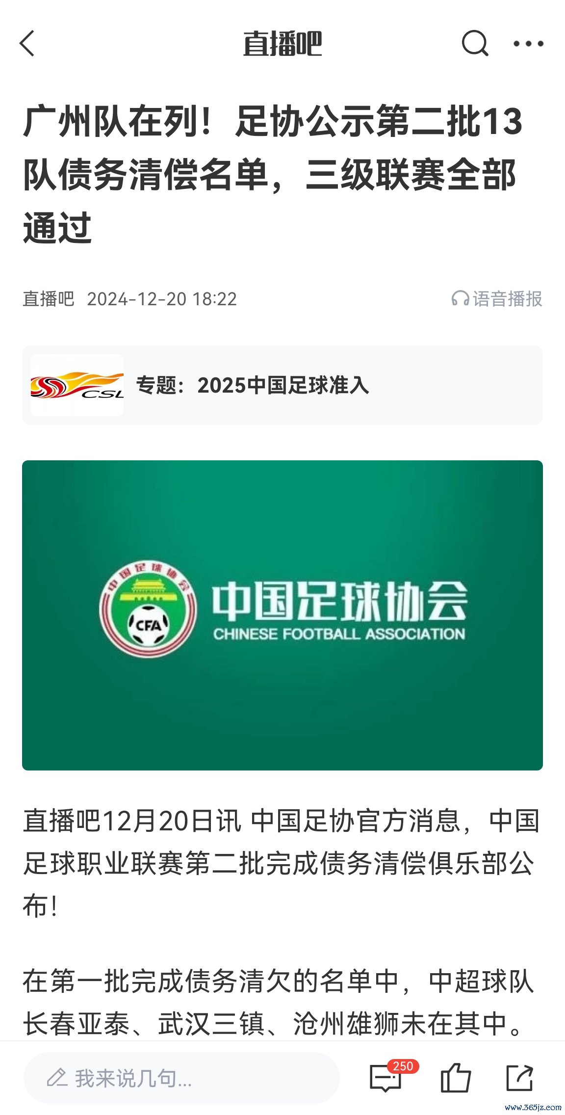 2025年1月6日,也即是今六合午,足协公布2025赛季准入名单,广州队无缘