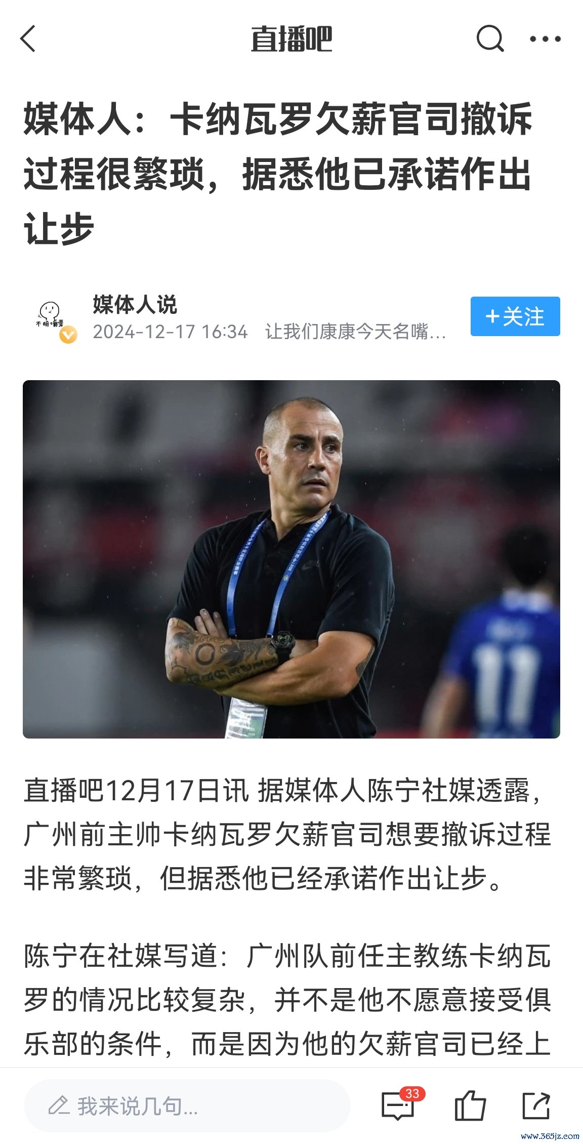 2024年12月,卡纳瓦罗作念出腐败,广州暂时科罚海外足联方面的欠薪纠纷
