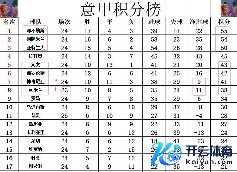 同期,其他竞争者如那不勒斯和国米,也在积分榜上展现了他们的实力。