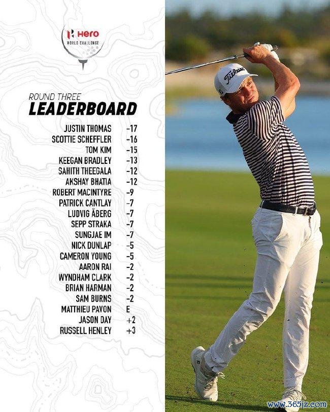 贾斯汀-托马斯的三轮收货为199杆(66-67-66),低于轨范杆17杆,星期天将与斯科蒂-舍夫勒同从终末一组起程,后者则要发愤获得第九场到手,为这个光泽赛季画下竣工句点。