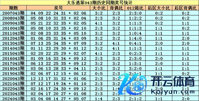 小王子大乐透第2025043期历史同时奖号属性分析: