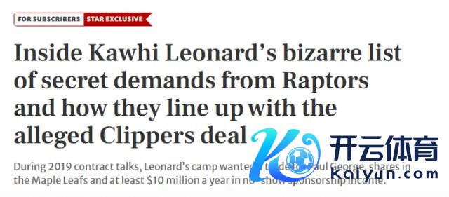阿瑟在报谈中写谈:"就在那时,猛龙队才意志到,莱昂纳德并非但愿被引荐给多伦多利润丰厚的企业圈——对方实质是在要求安排‘挂名岗亭’,以及促成‘无需进入的投资’。最终猛龙队终止了这两项提议。"