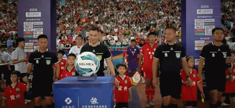两边球员入场,比赛行将启动