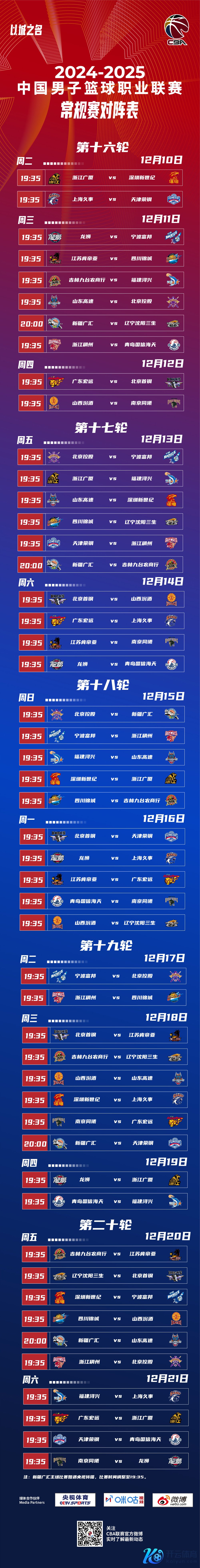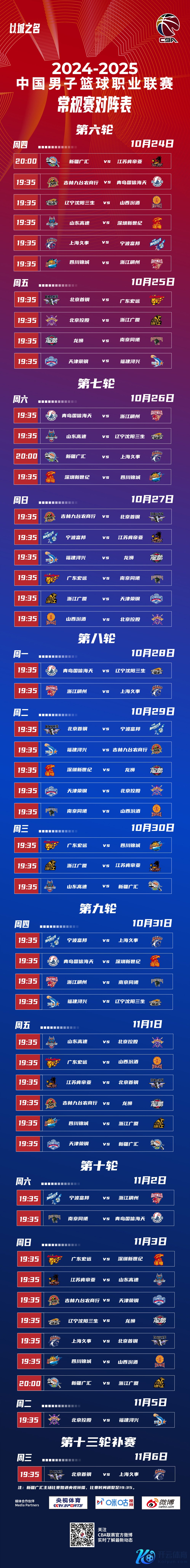 央视网音信:北京时辰9月16日体育赛事直播,CBA联赛官方公布《2024-2025赛季CBA联赛惯例赛对阵表》,新赛季CBA联赛将于2024年10月12日开赛,惯例赛共46轮。