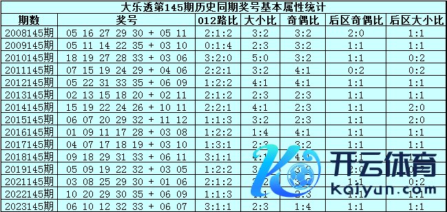 大乐透第2024145期历史同时号码分析: